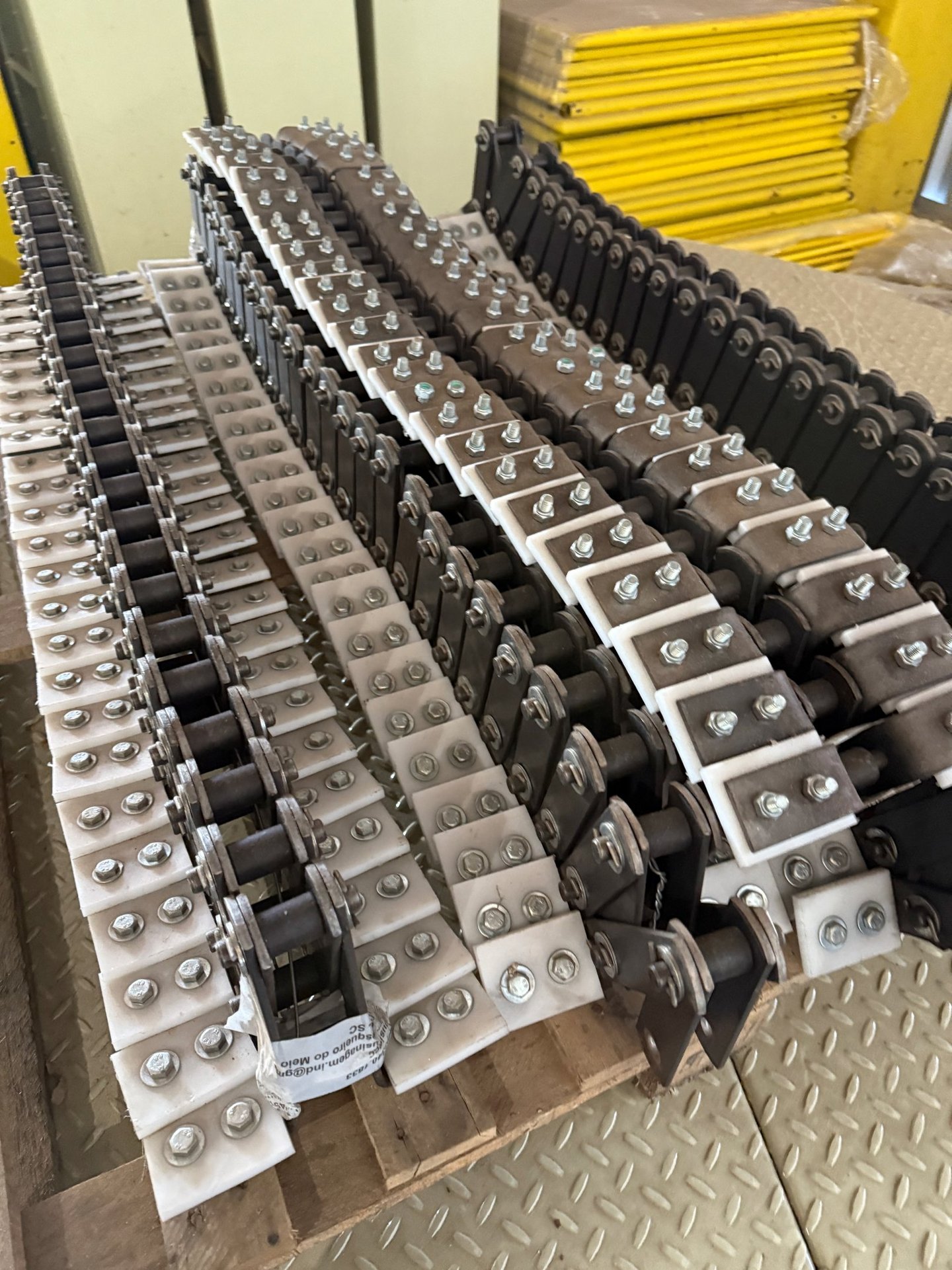 Toda a estrutura que envolve o sistema de arraste — como os dutos de transporte e perfis de reforço — é construída em aço carbono ou inox, conforme as exigências técnicas e sanitárias do projeto. São projetados para manter a integridade do sistema e proporcionar vedação, durabilidade e segurança ao processo.
