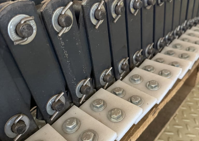 Integrados às correntes, os raspadores são projetados para garantir o deslocamento completo do material transportado, evitando acúmulos, entupimentos e perdas durante o processo. Fabricados em materiais resistentes, colaboram diretamente para a eficiência operacional e limpeza interna do sistema.